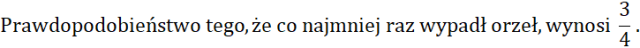 1. Odrzucamy tylko jedno zdarzenie: gdy wypadną dwie reszki {R, R}.