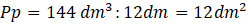 W tym zadaniu musisz obliczyć pole podstawy ostrosłupa, którego objętość jest równa 144 , a jego wysokość ma długość 12 dm.