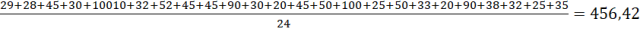 Mediana z szeregu: 20, 20, 25, 25, 28, 29, 30, 30, 32, 32, 33, 35, 38, 45, 45, 45, 45, 50, 50, 52, 90, 90, 100, 10010 to 45.