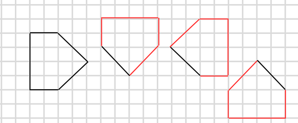 Narysuj figury przystające do narysowanej figury A tak, aby każda byłą obrócona względem A. Wykorzystaj do tego odcinek B. zauważ, że możesz narysować tylko 3 takie figury.