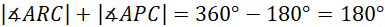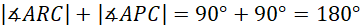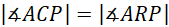 Stąd wynika, że na tym czworokącie można opisać okrąg. Zauważ, że kąty ARP i ACP to kąty wpisane w okrąg (oparty na czworokącie ARCP) oparte na tym samym łuku: