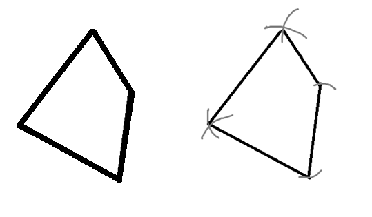 Narysuj dowolny czworokąt (postaraj się, żeby nie była to zbyt łatwa figura taka jak np. kwadrat, chodzi o poćwiczenie) i używając cyrkla i linijki odmierz odpowiednie boki, zaznacz cyrklem łuki i punkty ich przecięcia, a potem stwórz figurę przystającą.