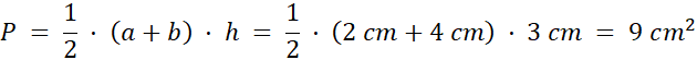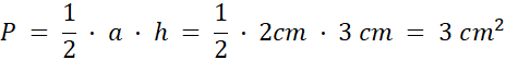 Trójkąt ma więc 1,5 cm2. Pod kreską znajduje się drugi trójkąt. Jego powierzchnia to połowa prostokąta o wymiarach 3 cm x 4 cm. Ten trójkąt ma więc 6 cm2.