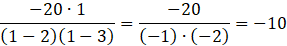 Utwórz ułamek, dla którego mianownik jest równy 0 dla x = 2 i x = 3, a następnie dobierz taki licznik, aby dla x = 1 wartość wyrażenia wynosiła -10.