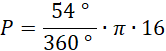 W tym zadaniu musisz wyznaczyć pole fragmentu koła, wiedząc że jego promień wynosi 4, a wycinek jest wyznaczony przez kąt 54°.