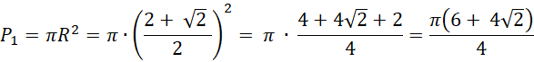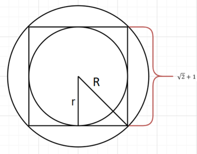 Oznacz jako r promień okręgu wpisanego w kwadrat i jako R promień okręgu opisanego na tym kwadracie. Zauważ, że: