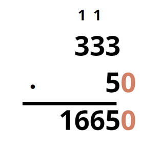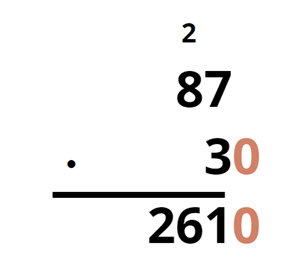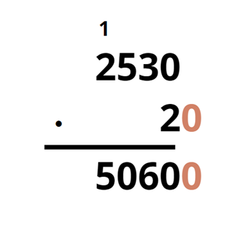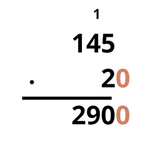 Aby pomnożyć dwie liczby sposobem pisemnym, z których przynajmniej jedna ma jedno lub więcej zer na końcu, zapisz je w taki sposób, aby ostatnie cyfry obydwu liczb niebędące zerami były w tej samej kolumnie. Zera natomiast powinny być po prawej od tej kolumny. Pomnóż przez siebie te dwie liczby, ignorując zera. Do iloczynu dopisz po prawej stronie tyle zer, ile wcześniej pominąłeś.