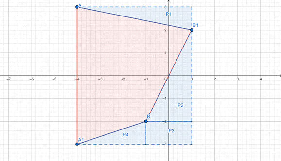 Symetria osiowa względem osi x sprawia, że zmienia się znak współrzędnej y, stąd: