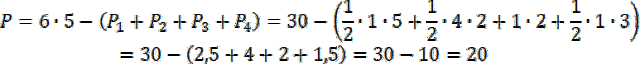 Zauważ, że wystarczy policzyć pole całej figury i odjąć pola figur, aby policzyć pole czworokąta, zatem: