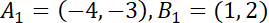 Symetria środkowa względem początku układu współrzędnych sprawia, że zmieniają się znaki obu współrzędnych, stąd: