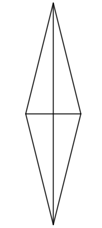 Narysowano romb o długościach przekątnych równych 2 i 10 cm.