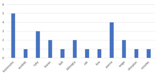 W tym zadaniu musiszprzeprowadzić badanie wśród swoich rówieśników i sporządzić diagram przedstawiający rozkład osób według znaku zodiaku.