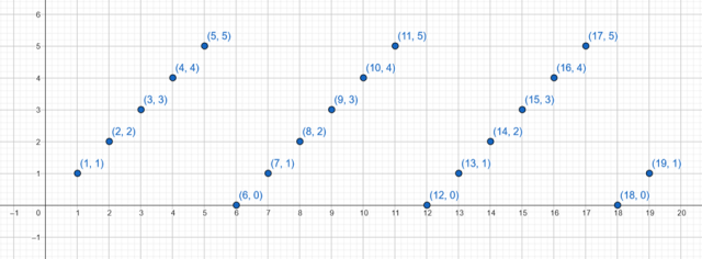 | 1 | 2 | 3 | 4 | 5 | 0 | 1 | 2 | 3 | 4 | 5 | 0 | 1 | 2 | 3 | 4 | 5 | 0 | 1 |