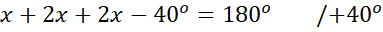 Wprowadź oznaczenia kątów na podstawie treści zadania. Skorzystaj z tego, że suma miar kątów w trójkącie wynosi
