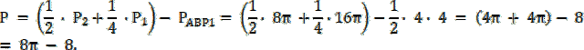 4. Z rysunku zauważ, że część wspólna okręgów tworzy trójkąt o polu P.