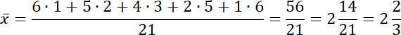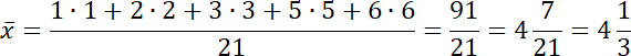 1 + 2 + 3 + 4 + 5 + 6 = 21 – łączna liczba rzutów kostką