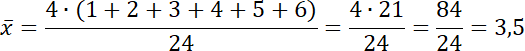 4 + 4 + 4 + 4 + 4 + 4 = 24 – łączna liczba rzutów kostką