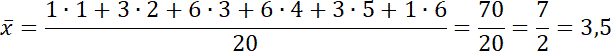 6 + 3 + 1 + 1 + 3 + 6 = 20 – łączna liczba rzutów kostką