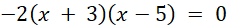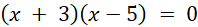 , a następnie otrzymujemy dwa rozwiązania z postaci iloczynowej, gdzie lewa strona wynosi 0, gdy co najmniej jedna wartość w nawiasach wynosi 0.