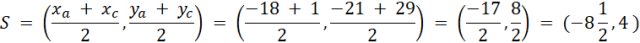 W tym zadaniu należy wyznaczyć punkt przecięcia przekątnych równoległoboku ABCD o wierzchołkach