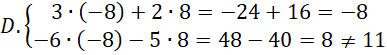 w każdym równaniu w podanym układzie równań podstaw liczby z odpowiedzi A-D i sprawdź, w którym przypadku w obu równaniach lewa strona będzie równa prawej.