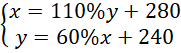 Ustal, ile zarobił każdy z chłopców, jeśli Paweł i Bartek pracowali w wakacje przy zbiorze owoców. Paweł zarobił 110% tego co Bartek i jeszcze 280 zł, natomiast Bartek dostał 60% tego co Paweł i jeszcze 240 zł.