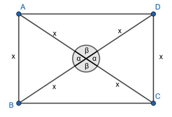 Wykonaj rysunek pomocniczy. Skorzystaj z tego, że jeśli przekątna jest dwa razy dłuższa od krótszego boku prostokąta, a jego przekątne przecinają się w połowie, to powstaną dwa trójkąty równoboczne, którego każdy z kątów ma taką samą miarę –