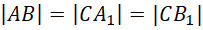 jest równoległa do boku AB, więc odcinki CB1 i AB są równoległe. Oznacza to, że czworokąt ABCB1 jest równoległobokiem, ponieważ ma dwie pary boków równoległych. Więc: