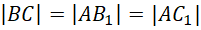 jest równoległa do boku AC, więc odcinki BC1 i AC są równoległe. Oznacza to, że czworokąt ACBC1 jest równoległobokiem, ponieważ ma dwie pary boków równoległych. Więc: