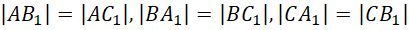 wynika, że punkty A, B i C są odpowiednio środkami boków B1C1, A1C1 oraz A1B1.