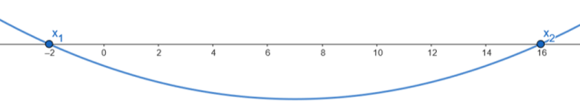 Na koniec wyznaczone rozwiązania zaznacz na osi OX i narysuj parabole o ramionach skierowanych w górę, jeśli współczynnik