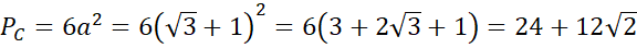 Wyznacz pole powierzchni całkowitej i objętość sześcianu, którego przekątna jest o 2 dłuższa od krawędzi.