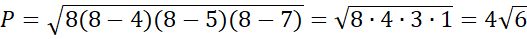 Oblicz, ile wynosi pole trójkąta o bokach 4, 5, 7.