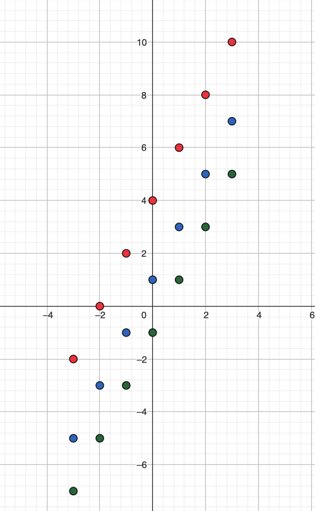 Teraz narysuj wykres funkcji f, g i h na jednym wykresie.