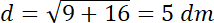 Przekrój 1 przez przekątne ścian 3 dm i 4 dm: