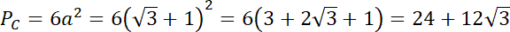 Wyznacz pole powierzchni całkowitej i objętość sześcianu, którego przekątna jest o 2 dłuższa od krawędzi.