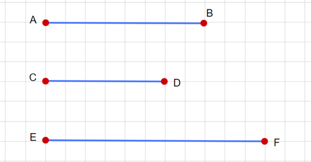 Narysuj trzy odcinki i podaj ich długości na trzy różne sposoby.