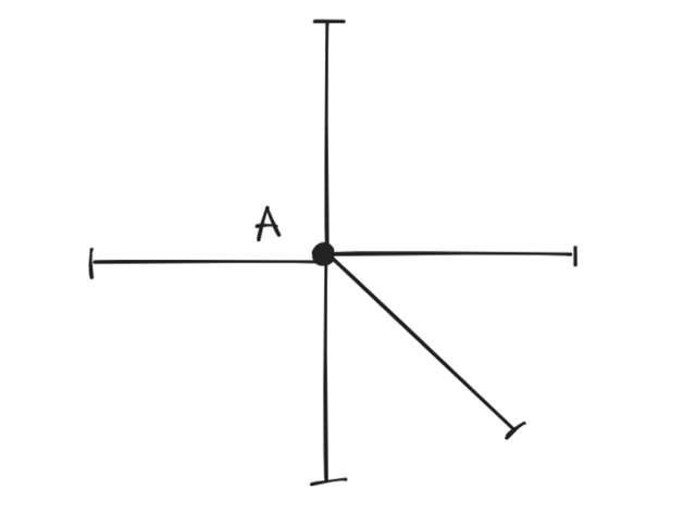 Korzystając z linijki, narysuj pięć odcinków o długości dwa centymetry każdy, tak żeby zaczynały się one wszystkie w jednym punkcie nazwanym A.
