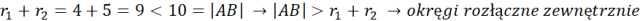 Musisz określić wzajemne położenie okręgów na podstawie danych długości ich promieni i odległości pomiędzy środkami okręgów.