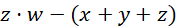 Masz podane liczby x, y, z, w. Zapisz symbolicznie różnicę iloczynu dwóch ostatnich i sumy trzech pierwszych.