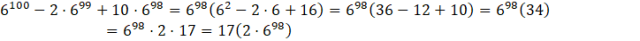 Twoim zadaniem jest wykazać, że liczba 6100 – 2 · 699 + 10·698 jest podzielna przez 17.