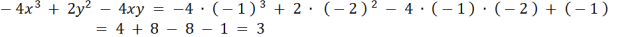 Najpierw podstaw wartości zmiennych, a następnie oblicz, pamiętając o kolejności wykonywania działań – najpierw mnożenie i dzielenie, potem dodawanie i odejmowanie.