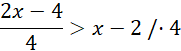 Korzystając z przekształceń obu stron nierówności, oblicz zbiór wartości zmiennej x. Pamiętaj o odwróceniu znaku nierówności przy obustronnym mnożeniu przez liczbę ujemną.