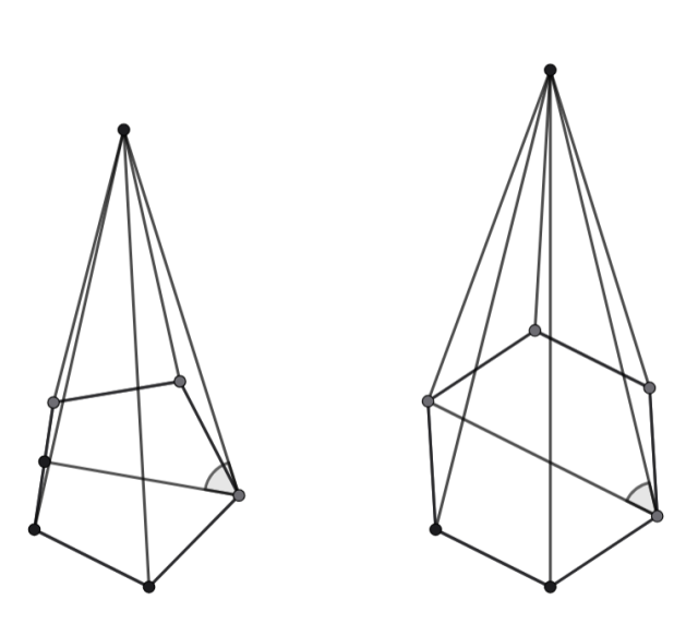 Narysuj rzuty ostrosłupów. Na każdym rysunku zaznacz kąt nachylenia prostej do płaszczyzny podstawy .