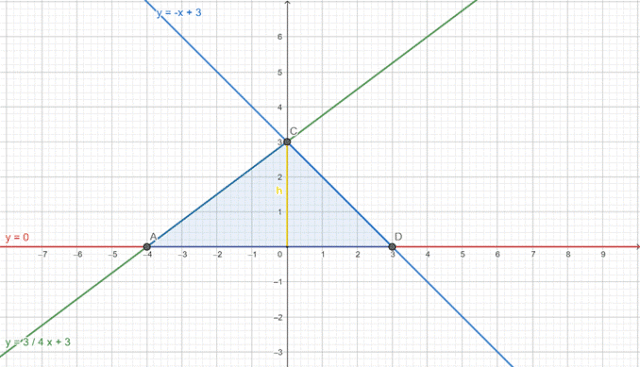 Narysuj proste i zaznacz wierzchołki trójkąta, które są punktami przecięcia tych prostych.