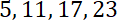 Przykład ciągu arytmetycznego czterowyrazowego, którego wyrazy są liczbami pierwszymi:
