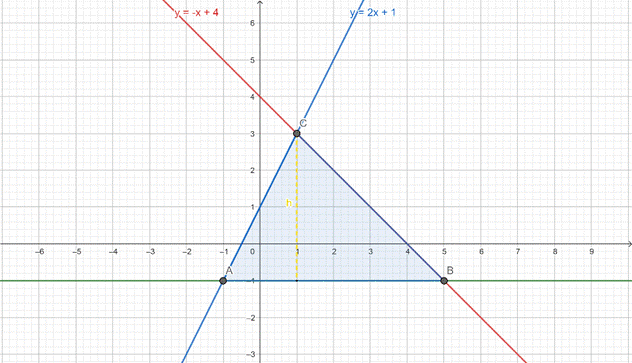 Narysuj proste i zaznacz wierzchołki trójkąta, które są punktami przecięcia tych prostych.