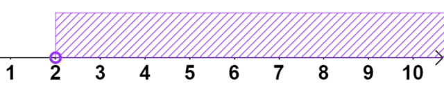 , oblicz zbiór wartości zmiennej x. Następnie narysuj zbiór na osi liczbowej jako przedział liczb większych od 2.
