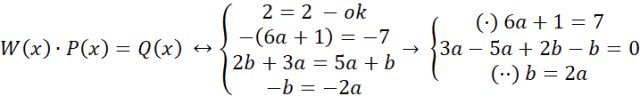 Musisz wykonać działanie iloczynu wielomianów W i P oraz porównać współczynniki otrzymanego wyniku oraz wielomianu Q.