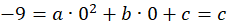 Podstaw do wzoru funkcji punkt (0, -9), aby wyliczyć wartość c. Skorzystaj ze wzoru
